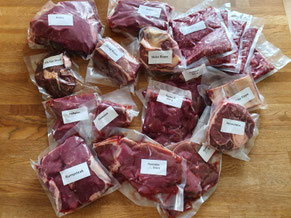 Da uns eine "komplette Verwertung" des Tieres sehr wichtig ist, bieten wir verschiedene Mischpakete (ab 5Kg), Grillpakete (ab 6Kg) sowie Wurst und Schinkenspezialitäten, portionsgerecht, vakuumiert und etikettiert an.